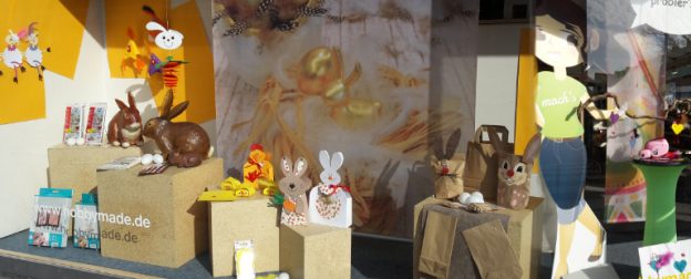 Frisch dekorierte Schaufenster in Leverkusen, mit