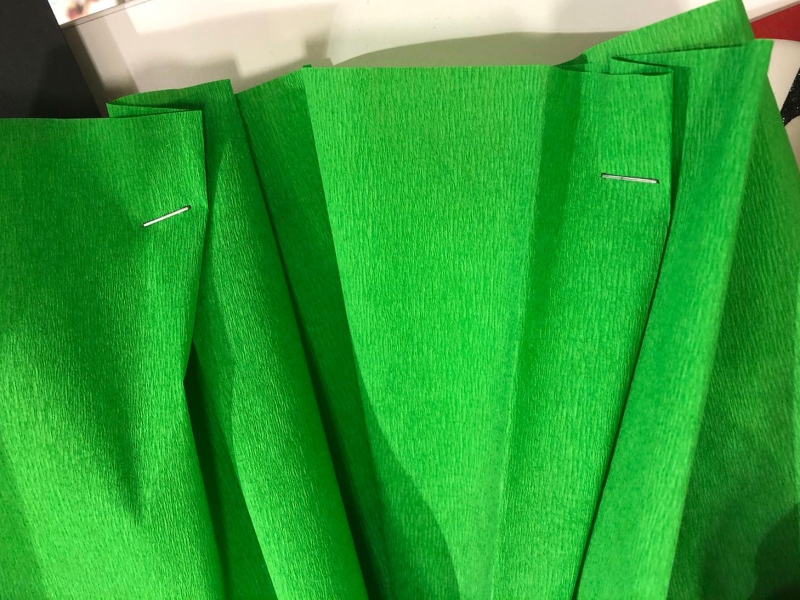 Für die Schultüten die Krepppapier-Rolle um ca. 10cm kürzen, auseinander rollen und die komplette Rolle in Falten tackern. Die Breite des Krepps sollte durch das Tackern der obere Breite der geöffneten Schultüte entsprechen.